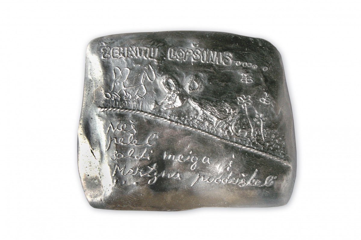 Apžiūrinėdama Jūsų medalį, eksponuojamą Telšių „Alkos“ muziejuje, radau žemaitišką užrašą: „Neš pelel saldi meiga marga puoduškeli“. Iš kur šis humoras?